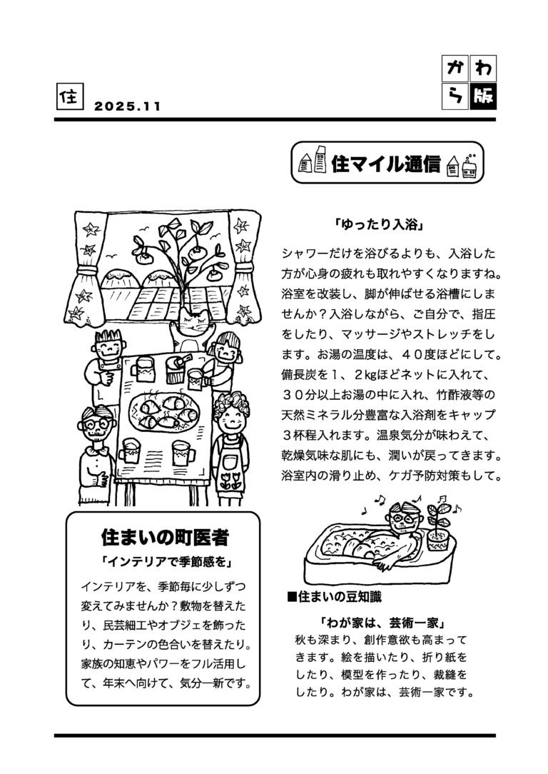 家族みんなで、協力し合って、小さな傷、汚れ、剥がれ等、住まいの小修繕をしています。徐々に、補修の技術力も高まってきました!