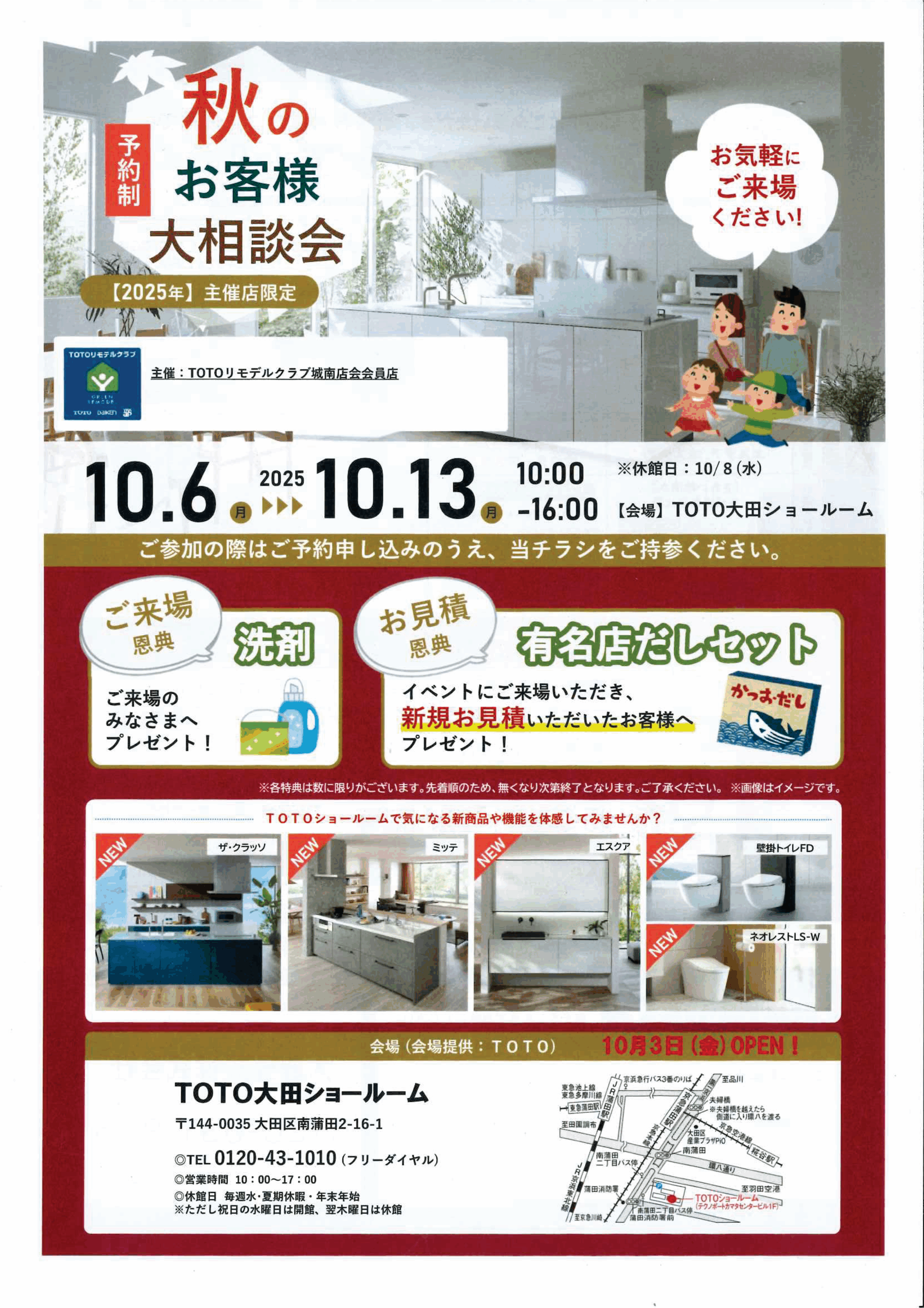 【要予約】2025年秋のお客様大相談会(TOTO大田ショールーム)