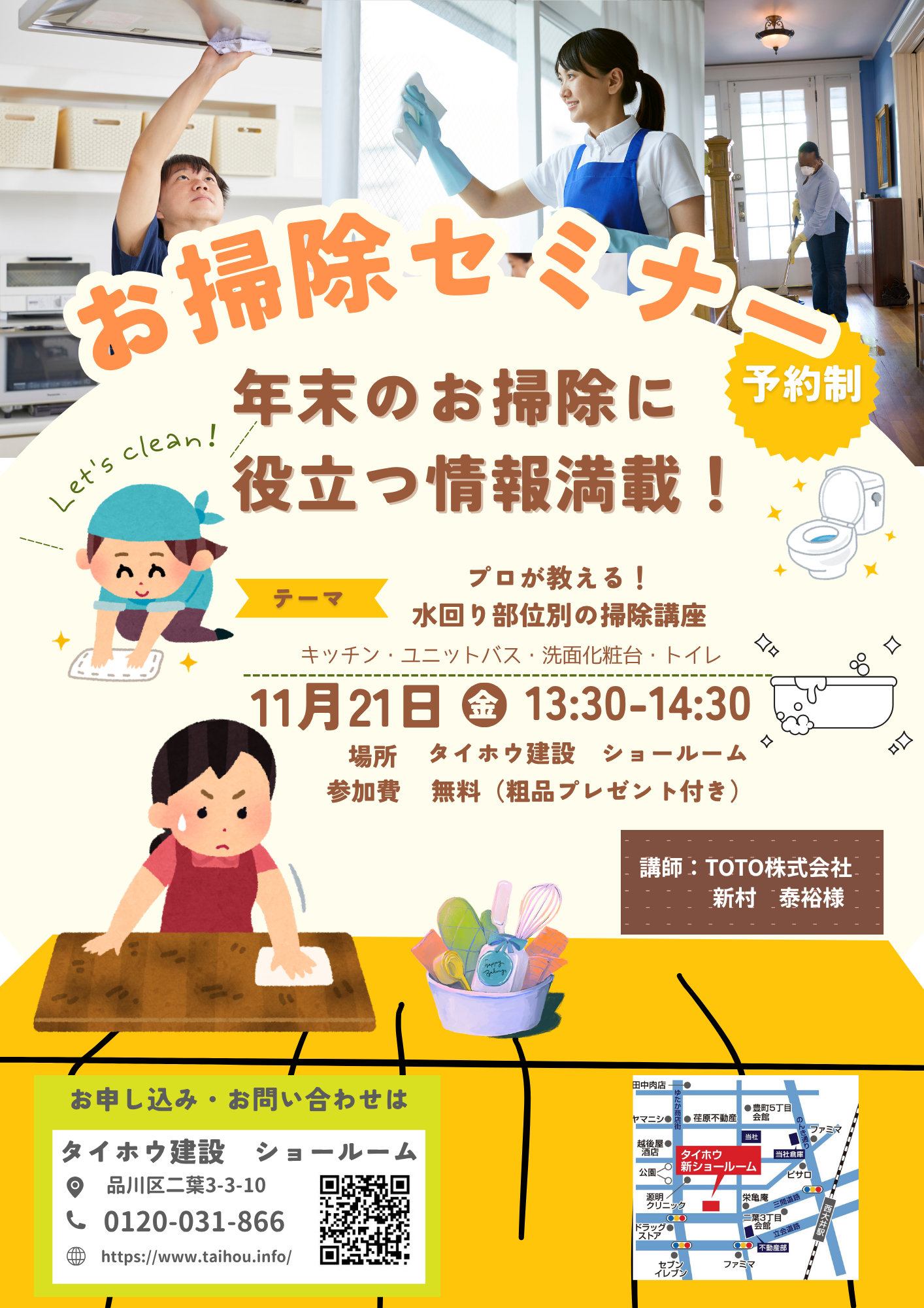 - 11月21日(金)に開催のお掃除セミナーのご案内です。