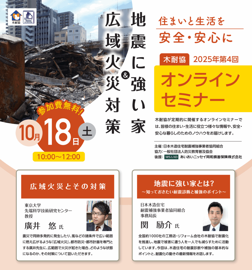 - 広域火災対策と地震に強い家のオンラインセミナーを開催します!