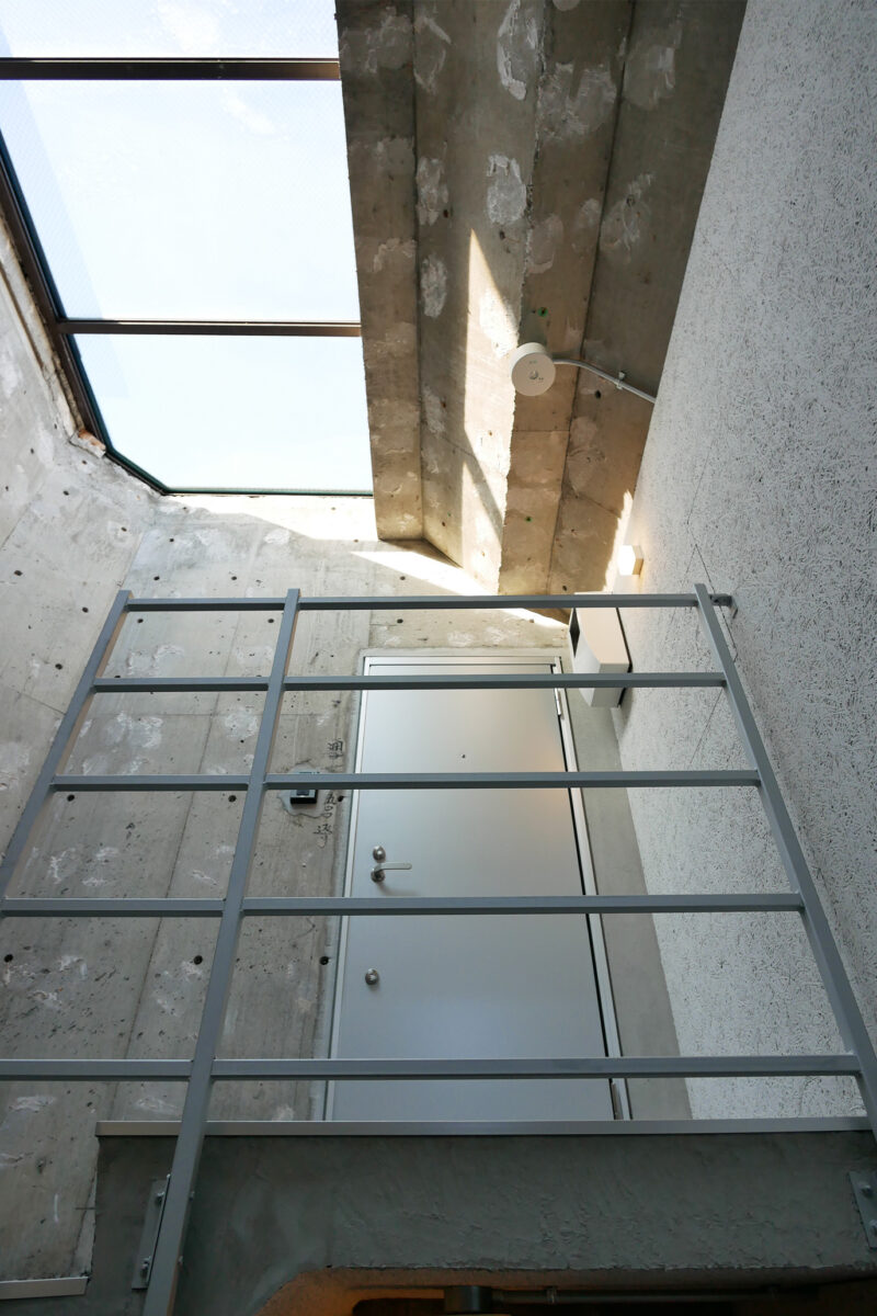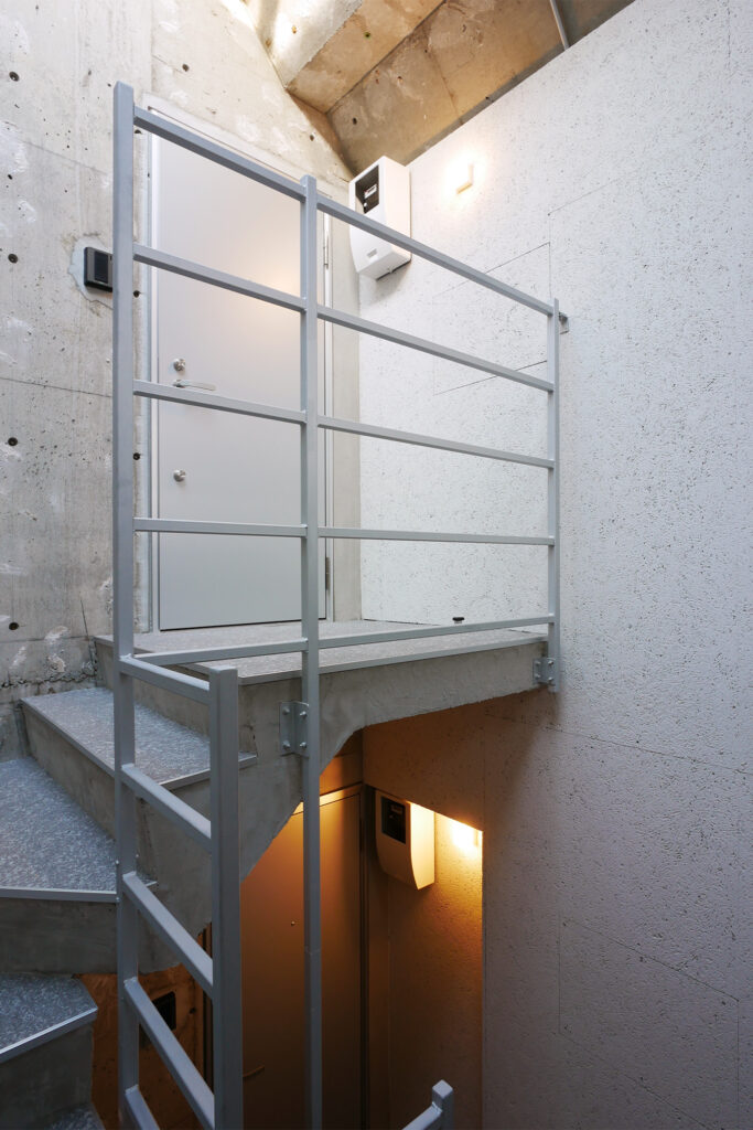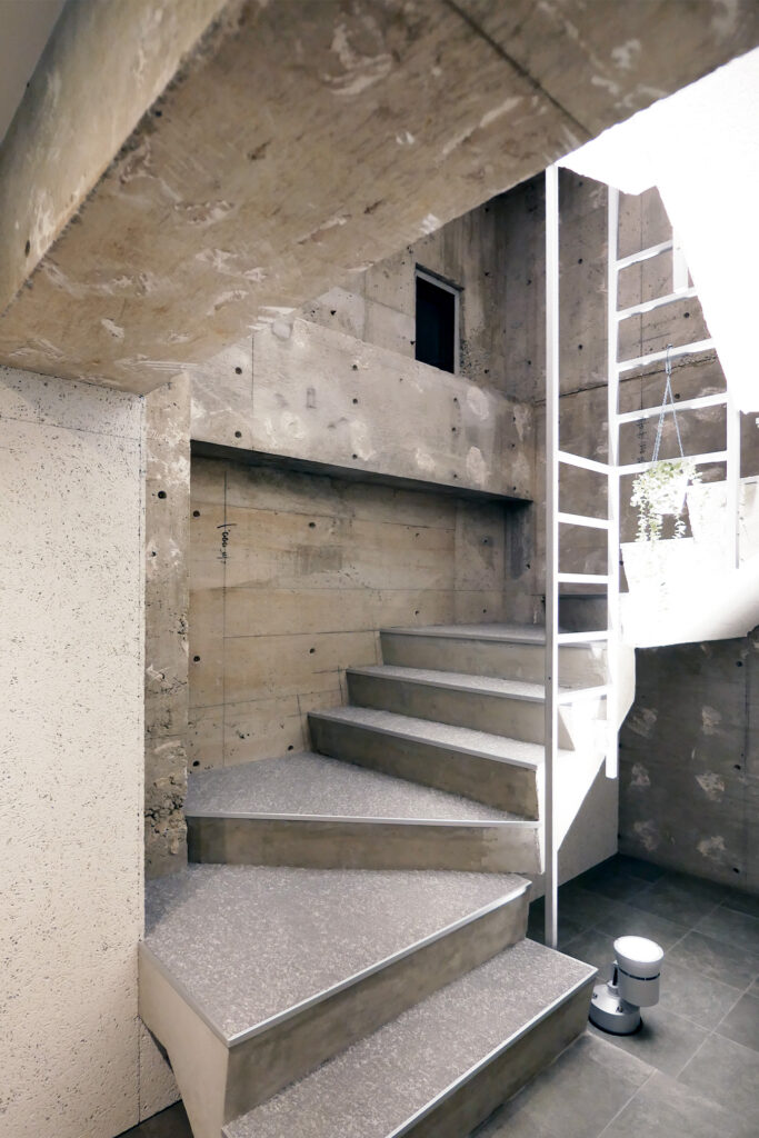 共用部の階段は解体時に現れた既存コンクリートの風合いを活かし、建物の記憶を受け継ぐ階段に仕上げました。
