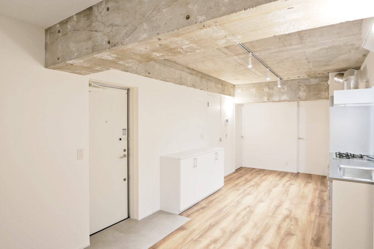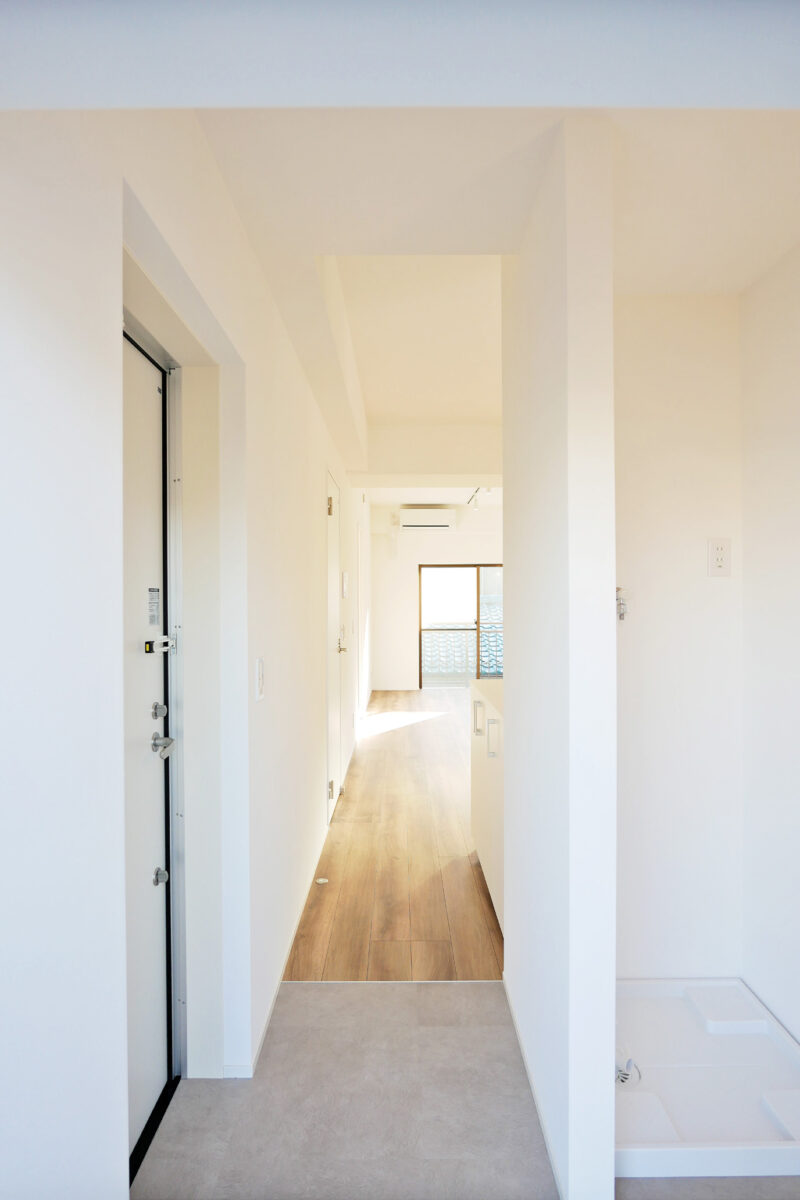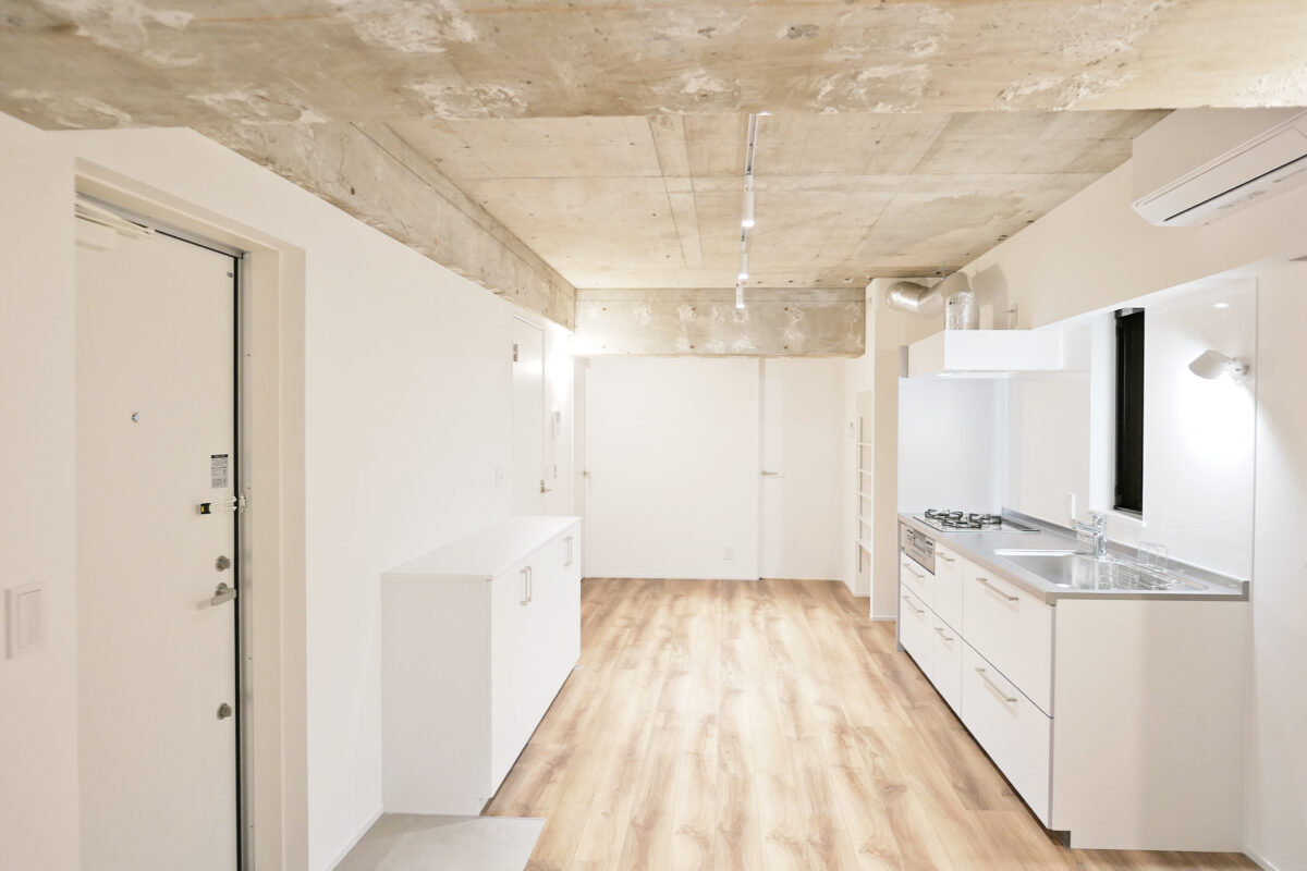 賃貸住戸は「クール・無機質・都会的」なデザインで統一。白を基調としたスタイリッシュな仕上がりは、感度の高い若い世代からも支持され、完成後すぐに満室となりました。