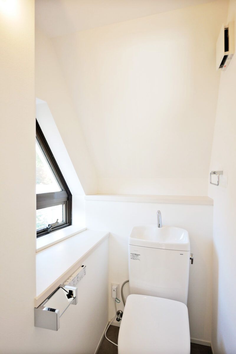 最上階である3階は、天井裏に断熱材を充填することで居住性能を高めながら、白で整えた天井が光をやわらかく反射しあたたかみを感じる空間に。